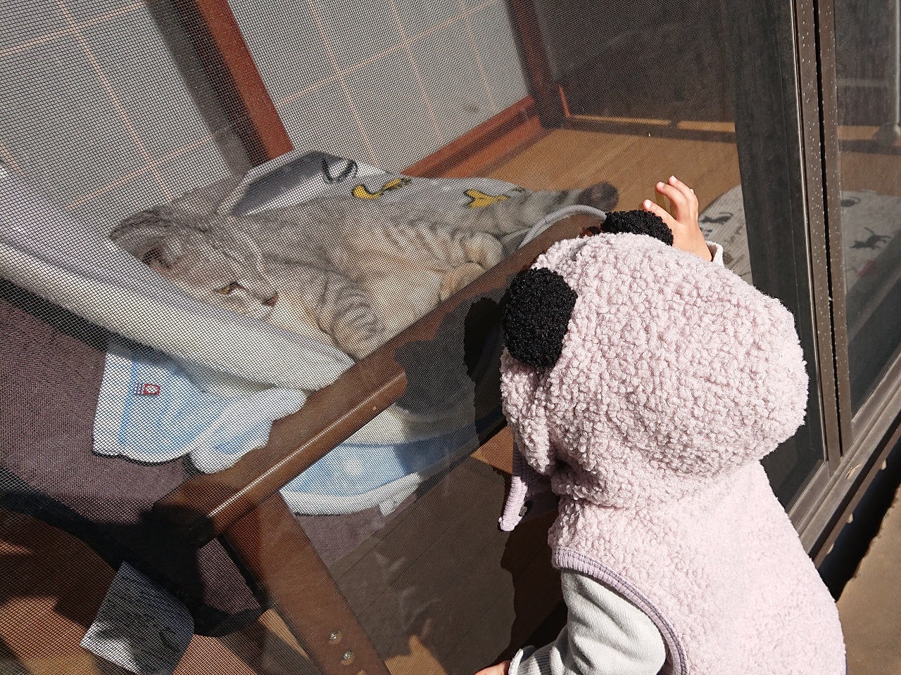 網戸に顔ががっつりつかんばかりのかぶりつきで、それはそれはガン見...とにかくガン見(笑)